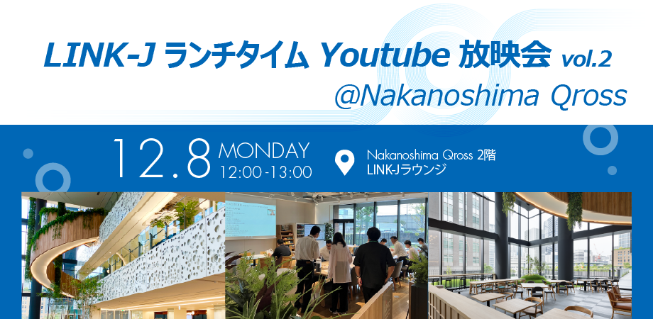 大阪中之島の新たな拠点である“Nakanoshima Qross”にて、「LINK-JランチタイムYoutube放映会vol.2」を行います。