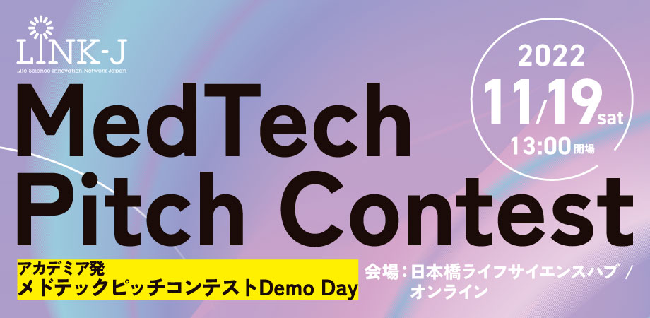 メドテック領域での事業化を検討している/事業化直後の研究者の支援の場として、原則LINK-J会員アカデミアから推薦を受けることを参加条件として(一部公募)、アクセラレーターやベンチャーキャピタルとの出会いを促進することを目的としたプログラムです。Demo Dayでは、1次審査を勝ち抜いた6チームがピッチを行います。