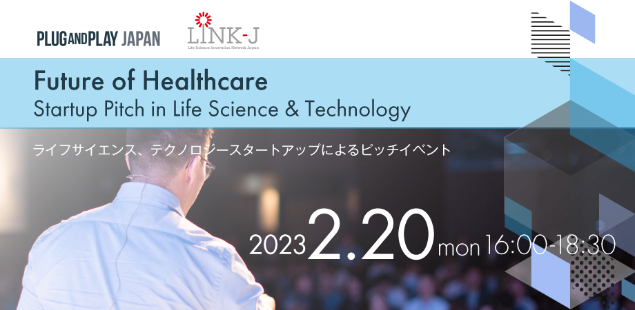 2月20日は[Life Science & Technology]というテーマで、ライフサイエンス関連のソフトウェア領域で活動するスタートアップを6社招き、ピッチセッションをハイブリッド形式にて開催いたします。(主催:Plug and Play Japan, LINK-J)