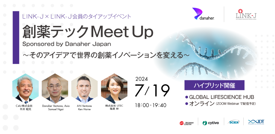 創薬支援テクノロジーと、ダナハーの戦略投資・テクノロジー・市場へのアクセスを結びつけることで、日本発のイノベーションが世界へ広がる機会を多く創り出したいと考えています。本イベントでは、創薬支援テクノロジーを持つスタートアップ企業、革新的なアイデアを持つ研究者、そして同分野に注力するベンチャーキャピタルなど、エコシステムを構成する皆様との意見交換を通じて、新たなイノベーションの可能性を探求します。