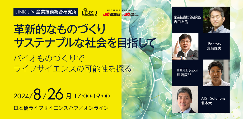 今回は、産業技術総合研究所と共催し、その取り組み技術について登壇者に講演を頂きます。このバイオものづくりの技術を知ることで製造の効率化に関する新たな発見やそのヒントを掴むきっかけとなることを期待し、このイベントを企画しました。